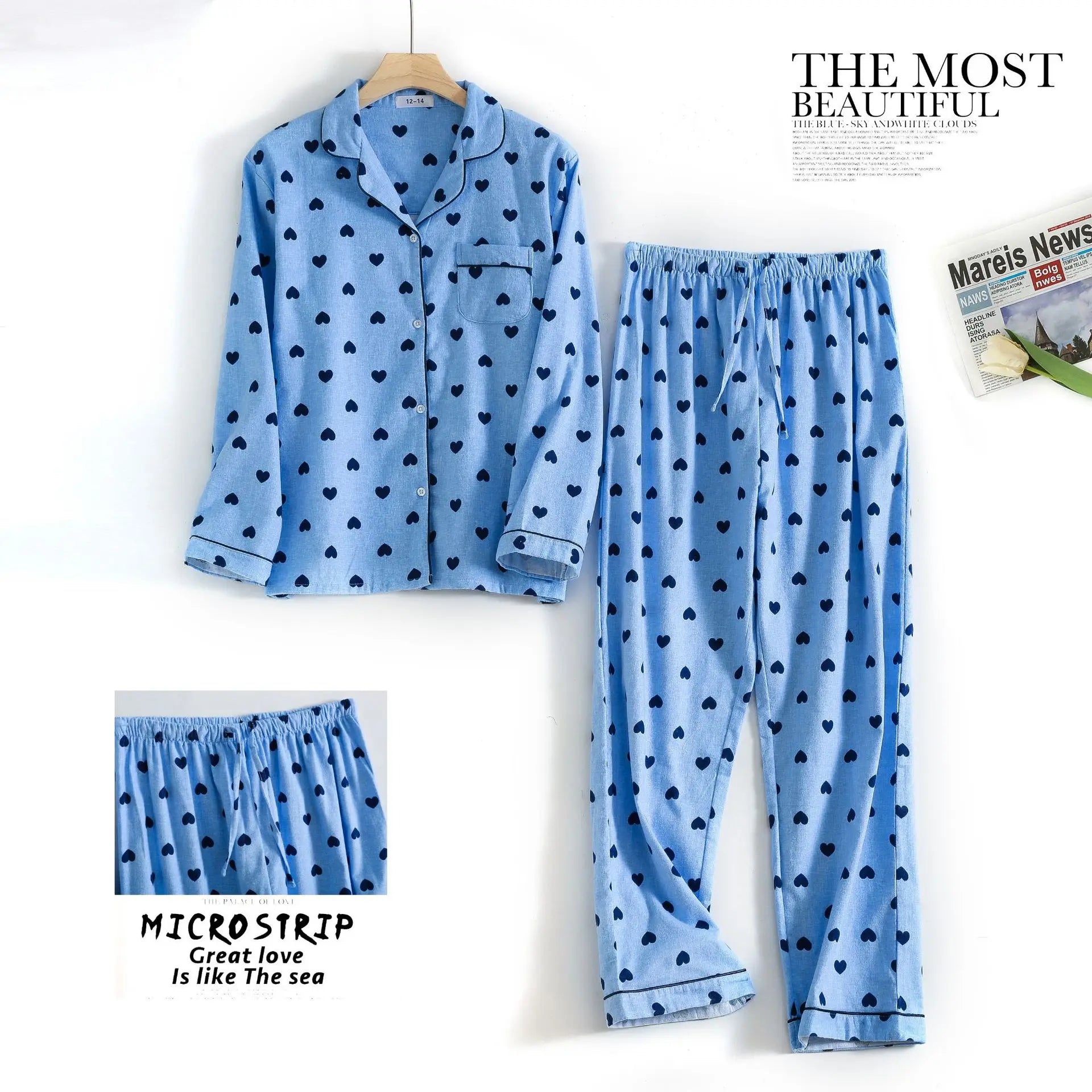 Fashion Plaid Winter 100% brushed cotton pajamas set women sleepwear
